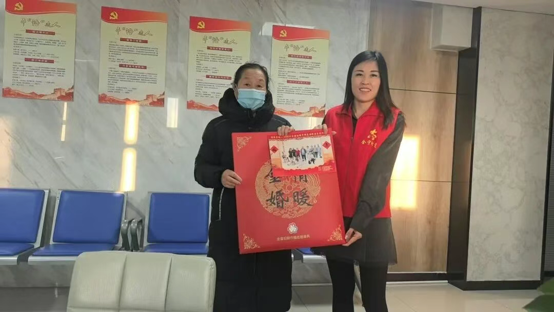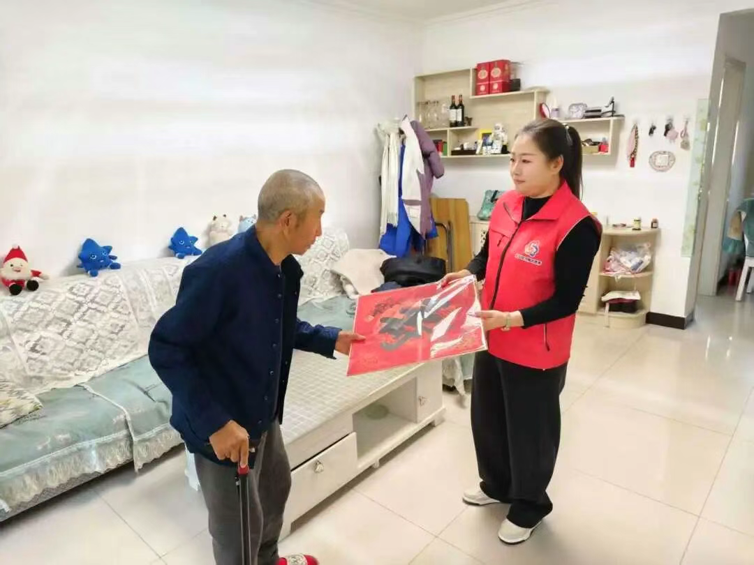 女性自愿者们采纳上门造访的方法,将这份满载祝福的礼物送到白叟手中。本次活动赠送的礼物不只有制造精巧的全家福相片,还有闻名书法家孙晓云题写的“寿”字著作。这份礼物既是对白叟们长久以来彼此扶持、共度风雨的婚姻生活的礼赞,也寄托着对他们健康长寿、夸姣健康的夸姣祝福。